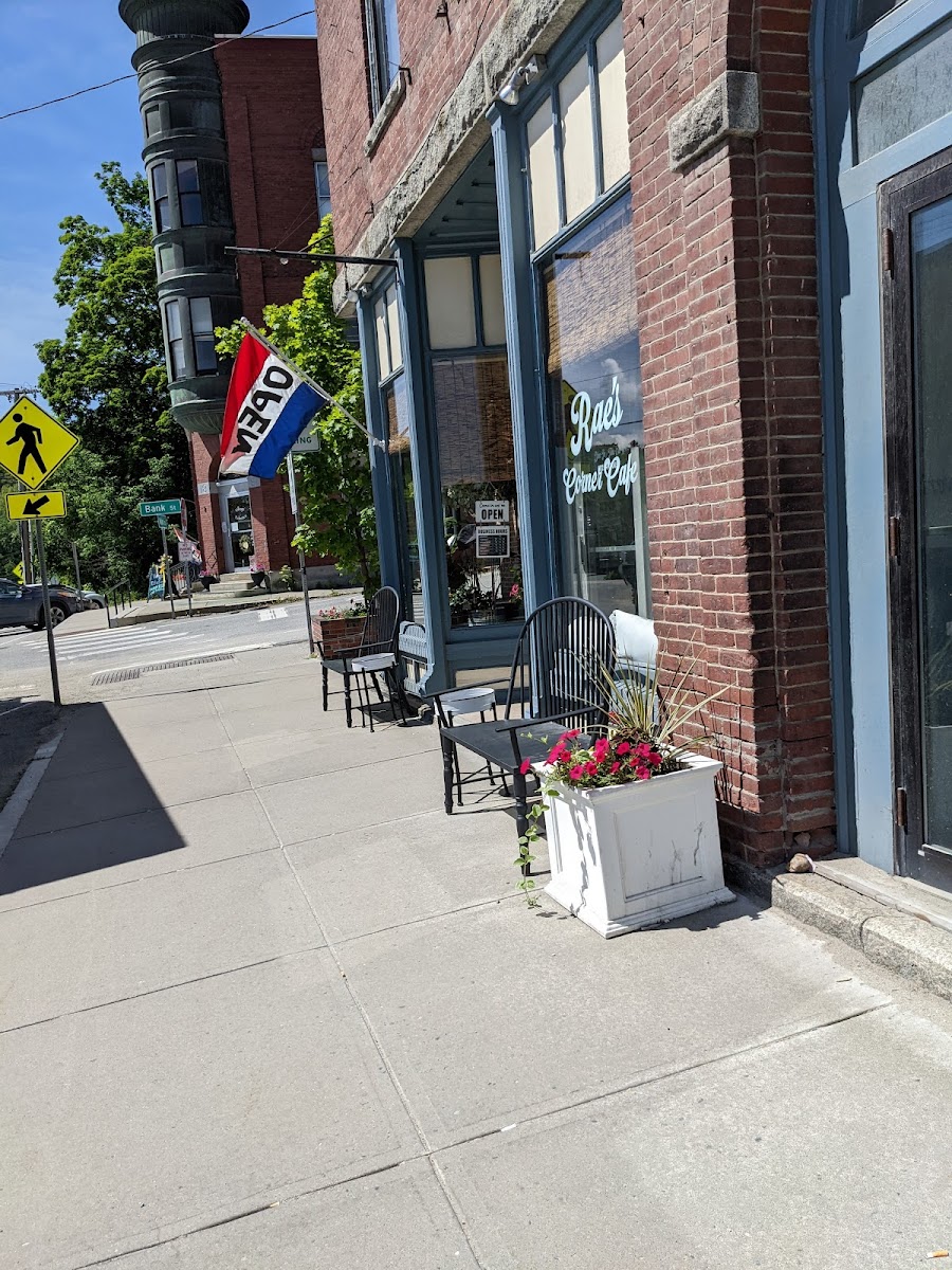 Rae’s Corner Cafe sits quietly on Main Street in Bradford, offering the kind of simple, unpretentious charm that feels familiar and easy to settle into. This is a spot where locals swing by for a solid breakfast or a midday bite, drawn by the warm, homey kitchen vibe that recalls classic roadside cafes and old-school truck stops. The atmosphere is bright and welcoming, with sunlight filtering through windows onto leafy plants — a small touch that adds freshness to the room without feeling too staged.
